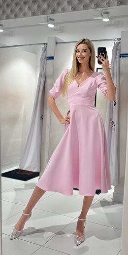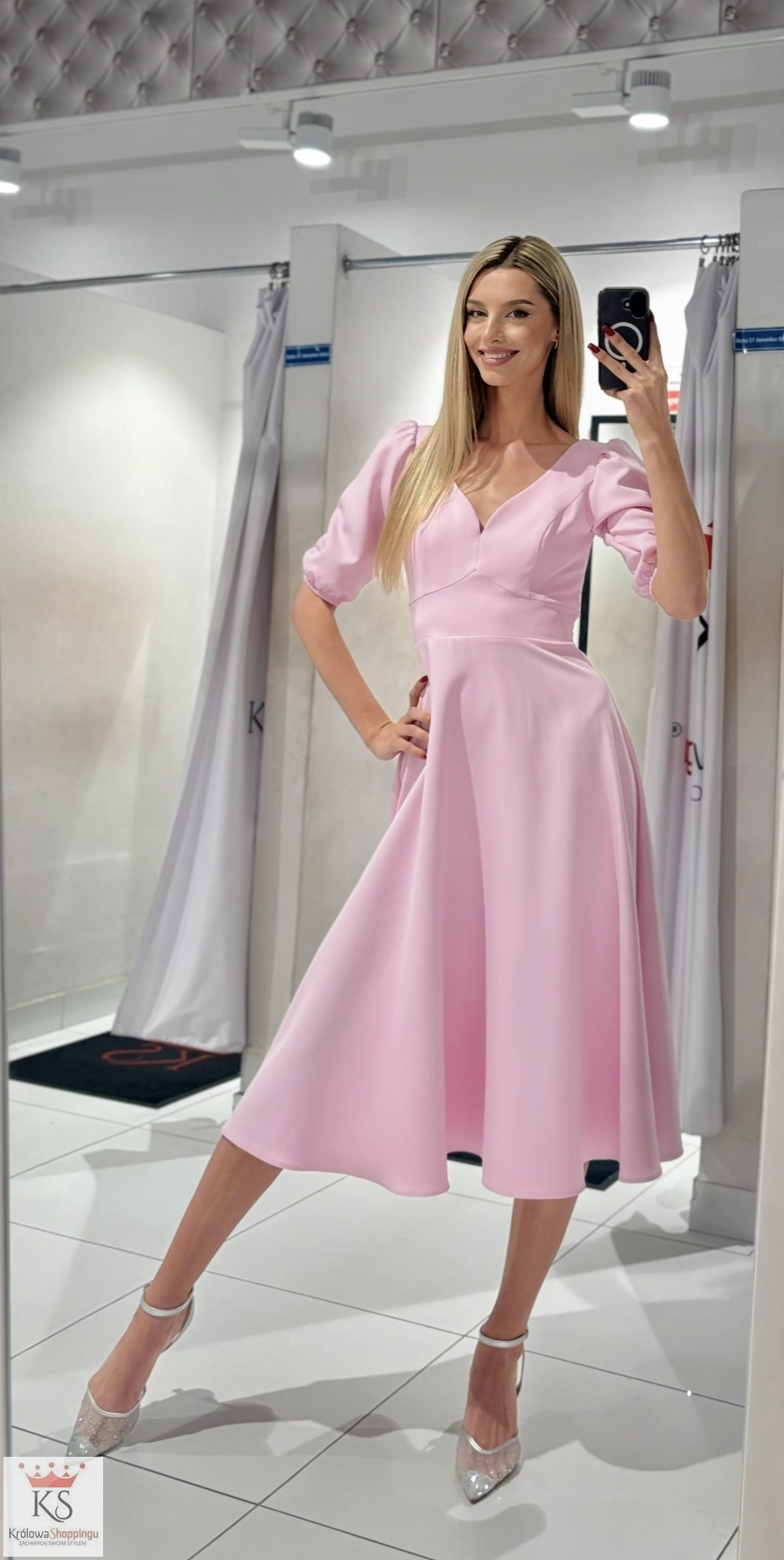 Sukienka midi rękawek wiązanie tył cukierkowy róż