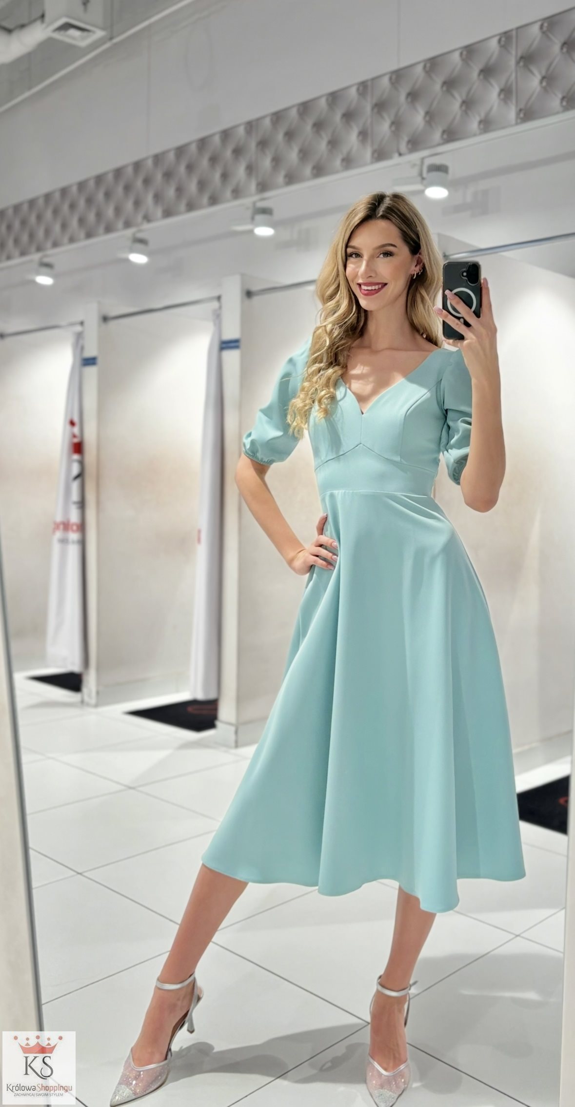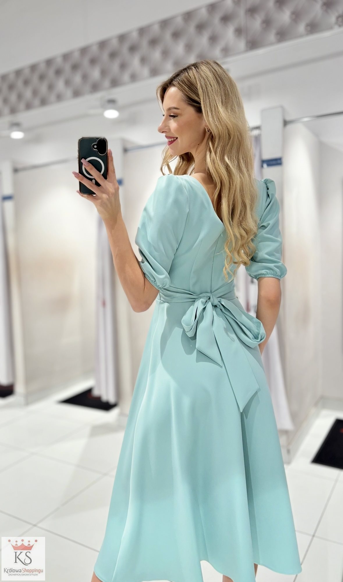 Powiadomienie o dostępności: Sukienka midi rękawek wiązanie tył pistacja