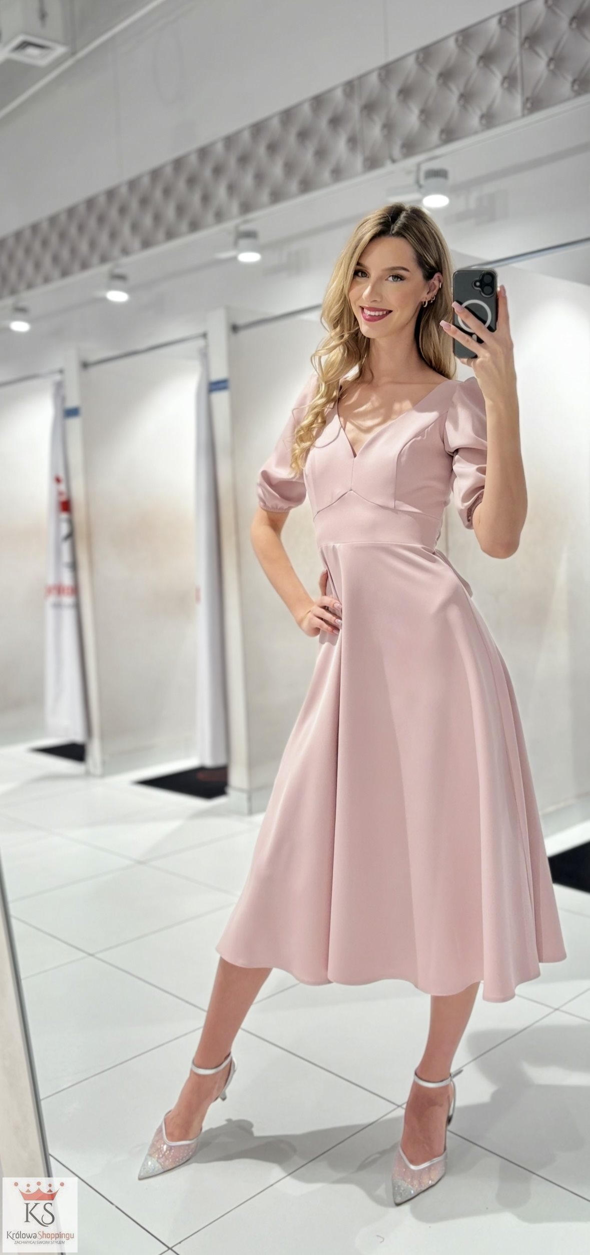 Powiadomienie o dostępności: Sukienka midi rękawek wiązanie tył pudrowy róż