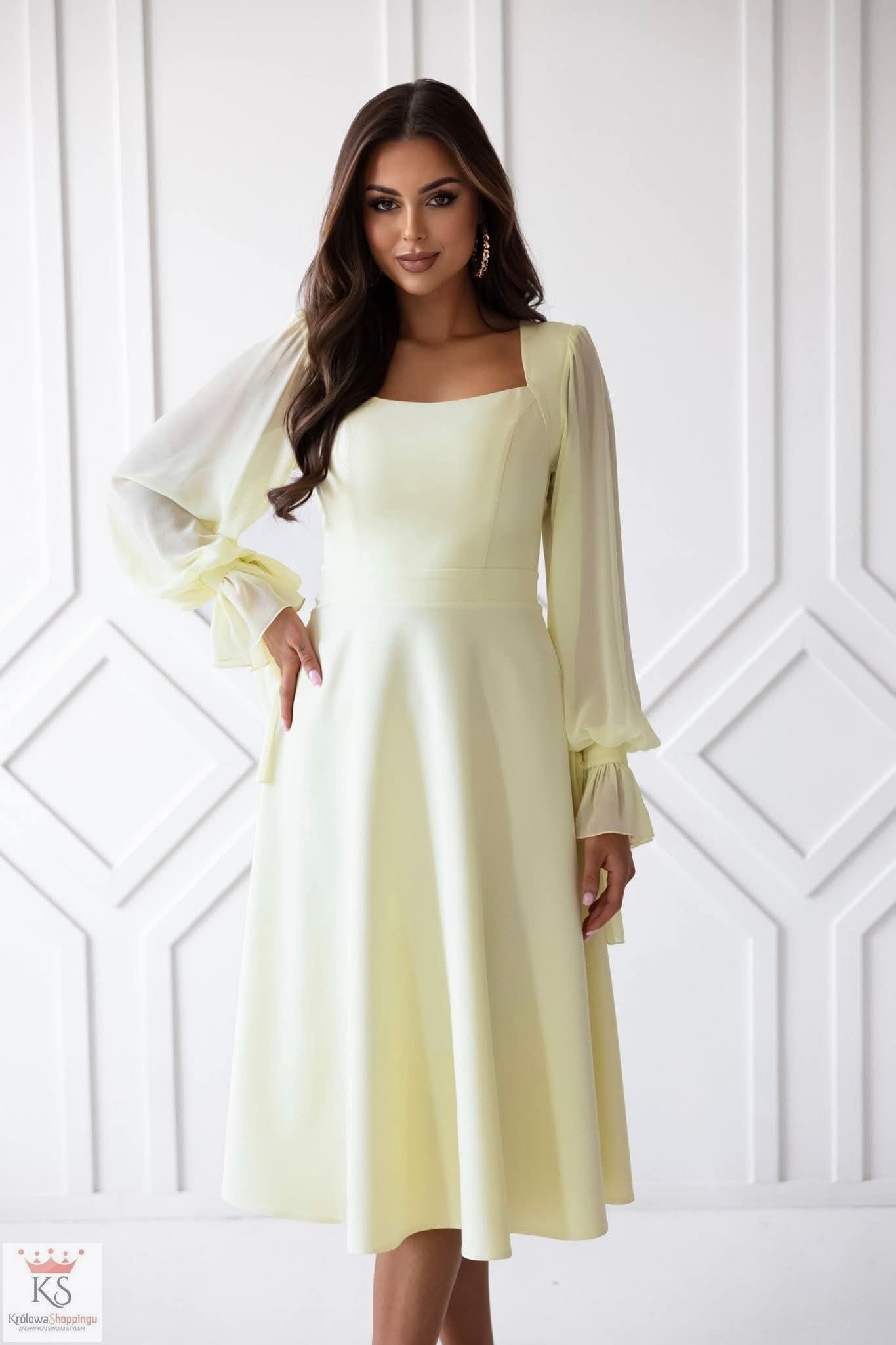 Sukienka midi wiązane rękawki żółty