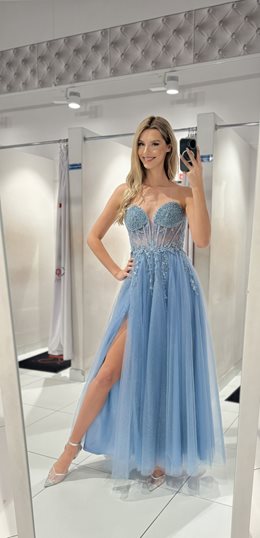 Powiadomienie o dostępności: Sukienka tiulowa gorset zdobiony perłami jeans