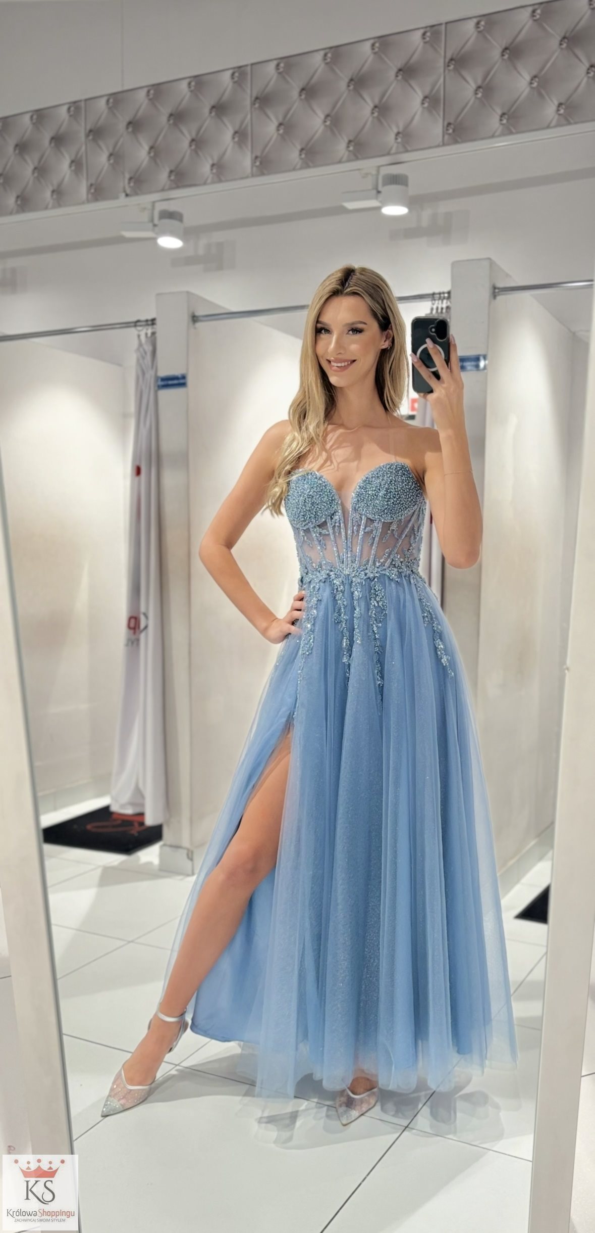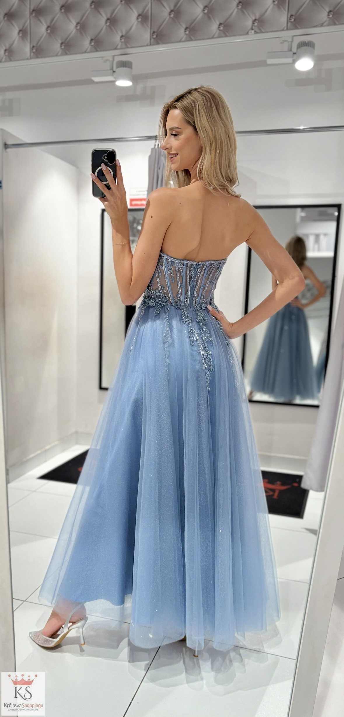 Sukienka tiulowa gorset zdobiony perłami jeans