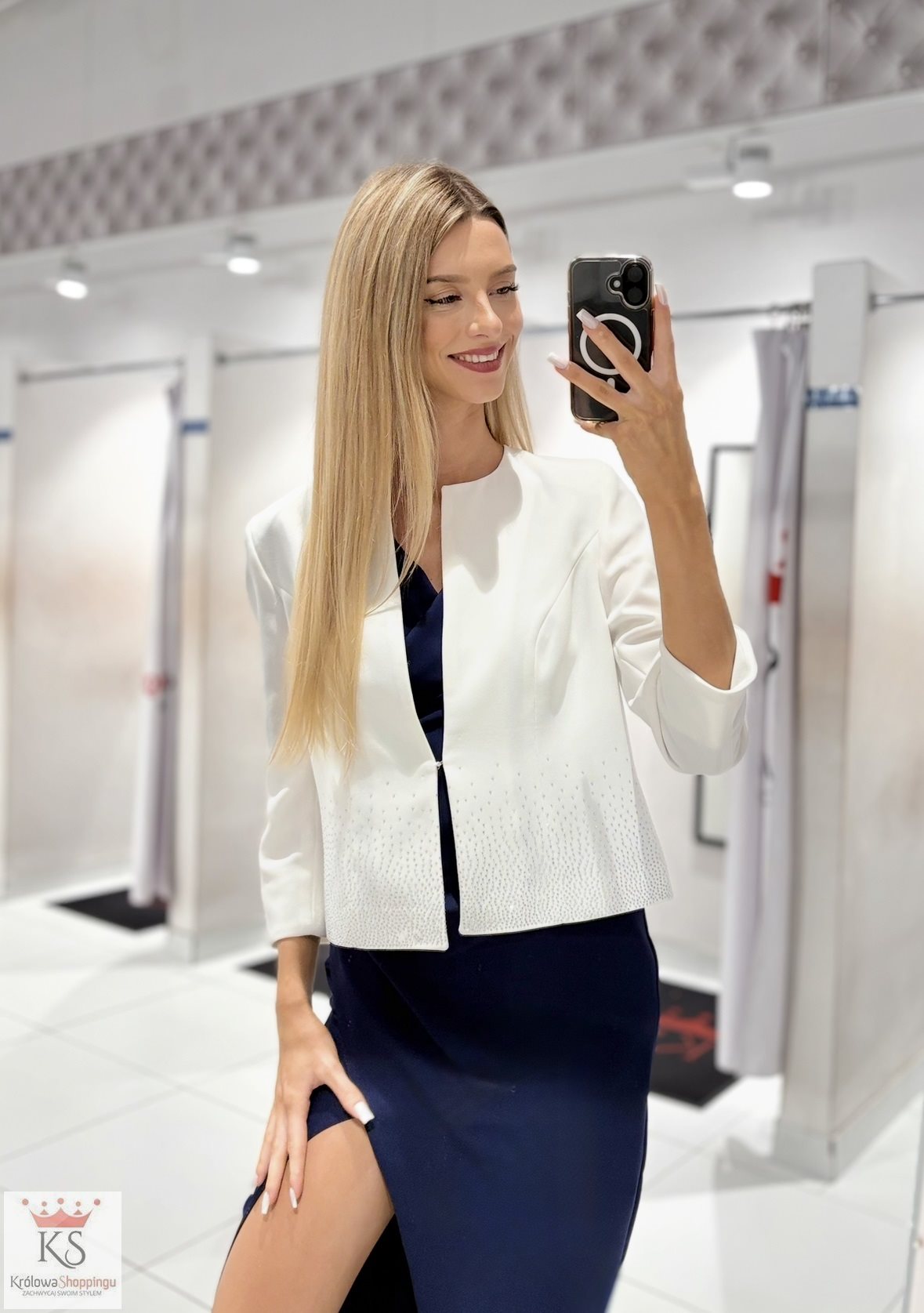 Żakiet zdobiony cyrkoniami biel